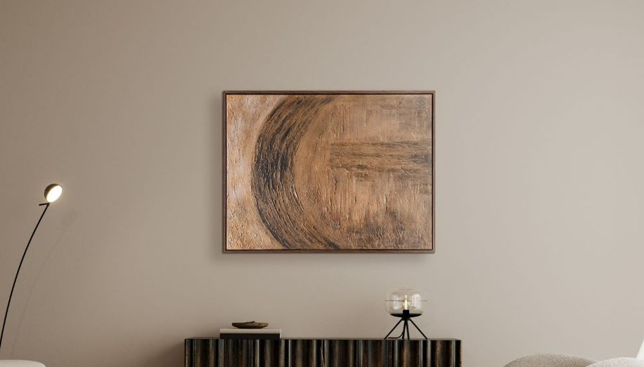 The Óige art is one for the neutral lovers. Soothing, heavy textures of metallic paint and luscious strokes of molding paste are generously applied to create depth and dimension to this piece. The frameless cotton canvas will surely add visual interest when hung in...- €297.50