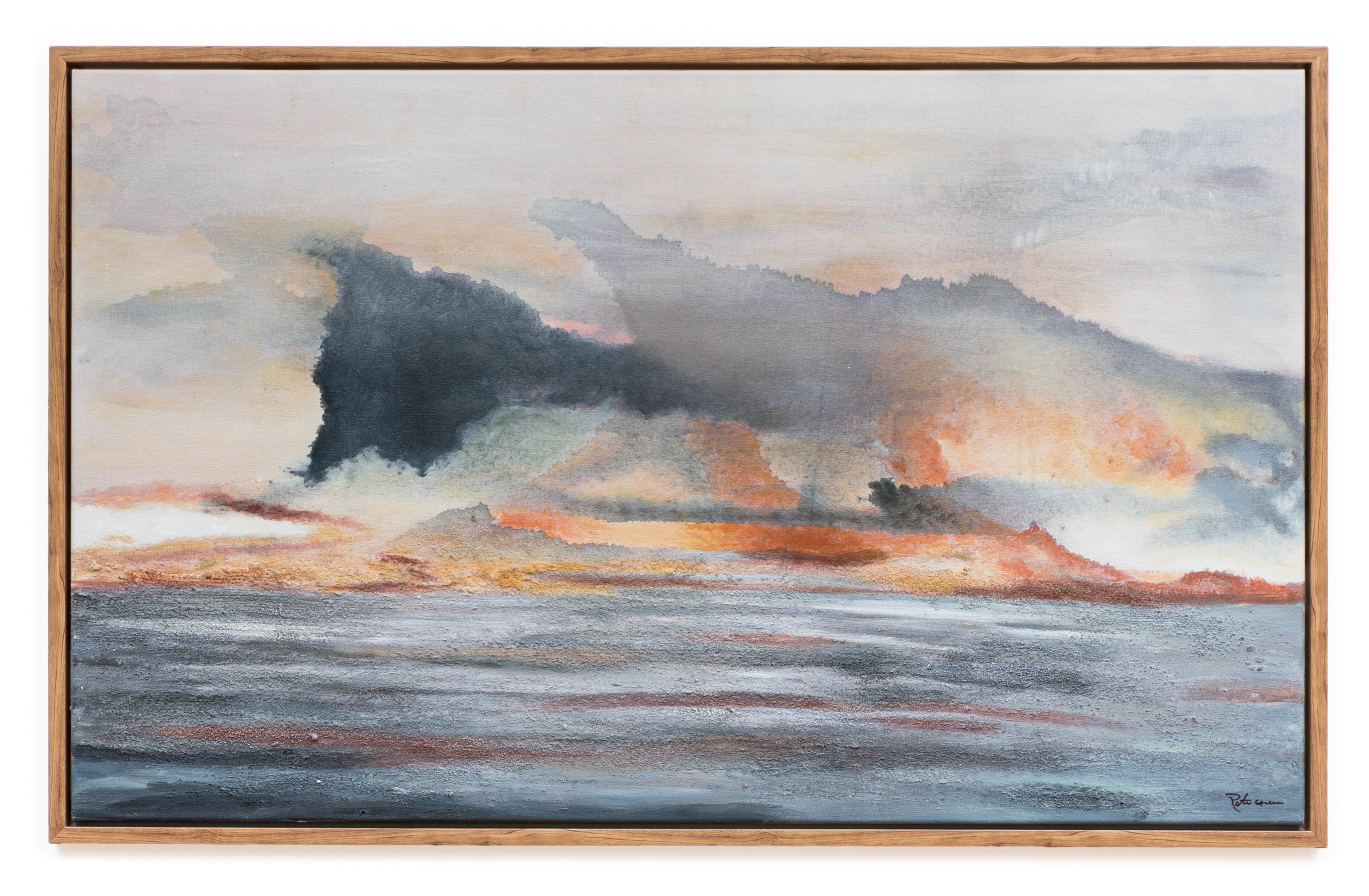 Capture the moody calm of sea and sky with Alder — a textured artwork that blends colour, depth, and serenity.
