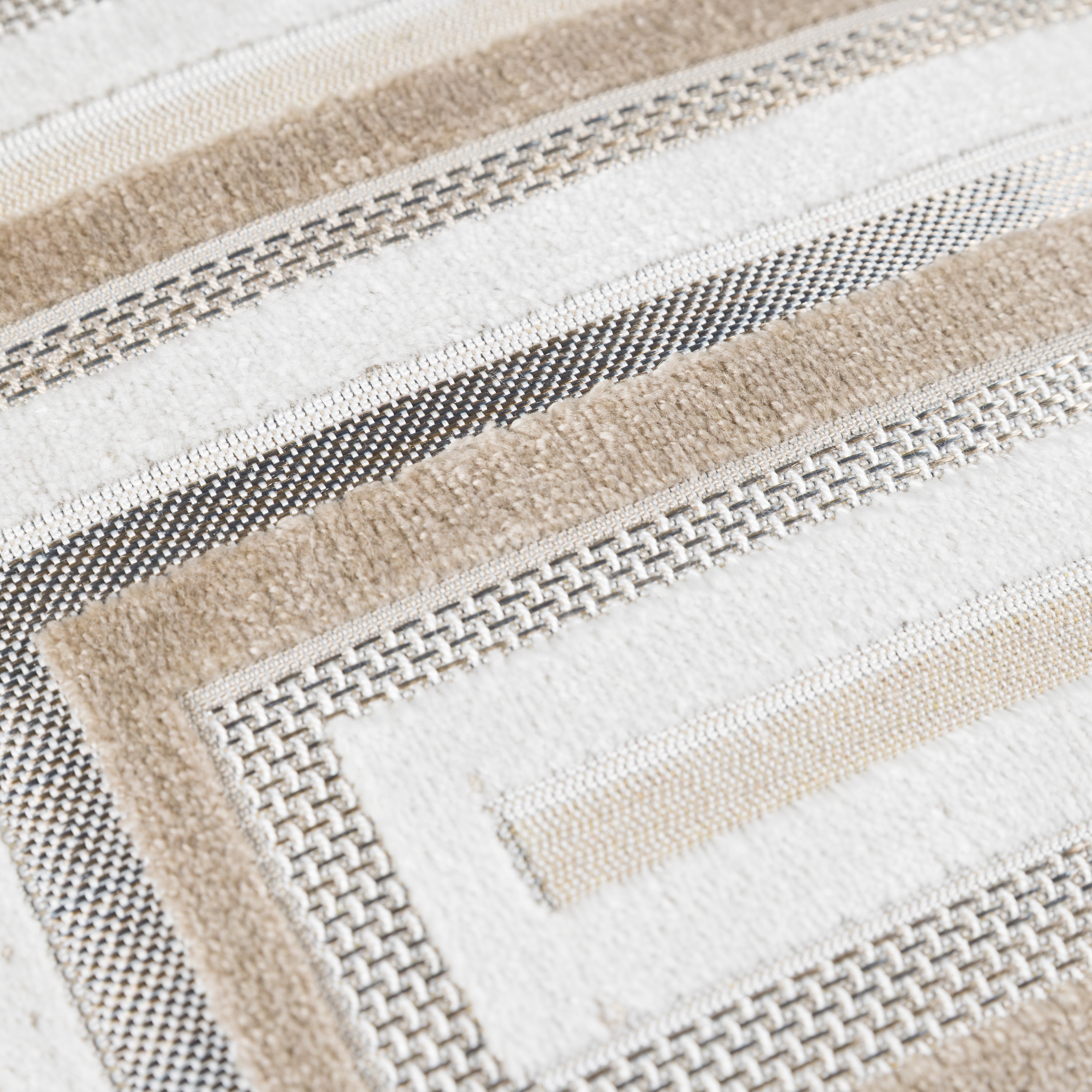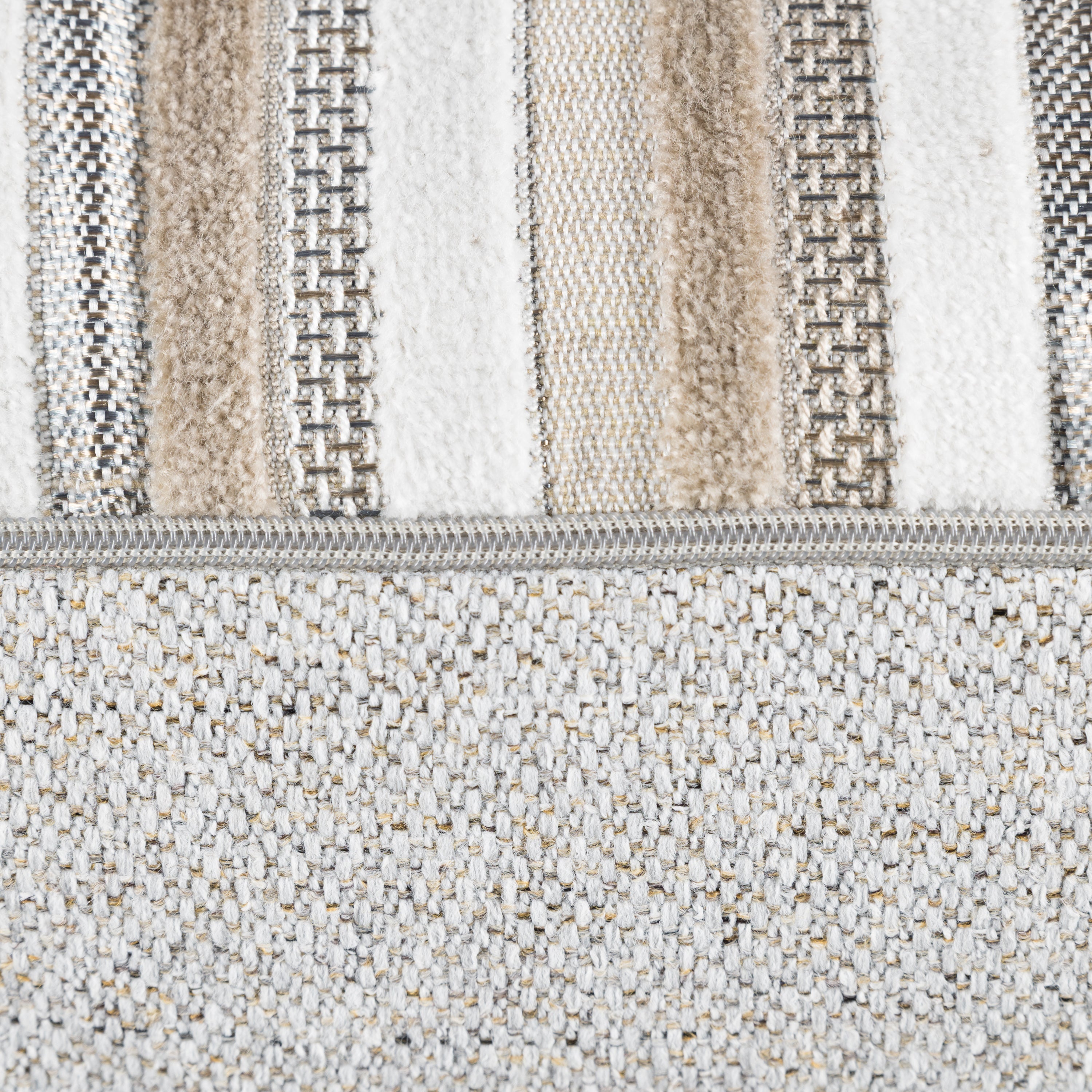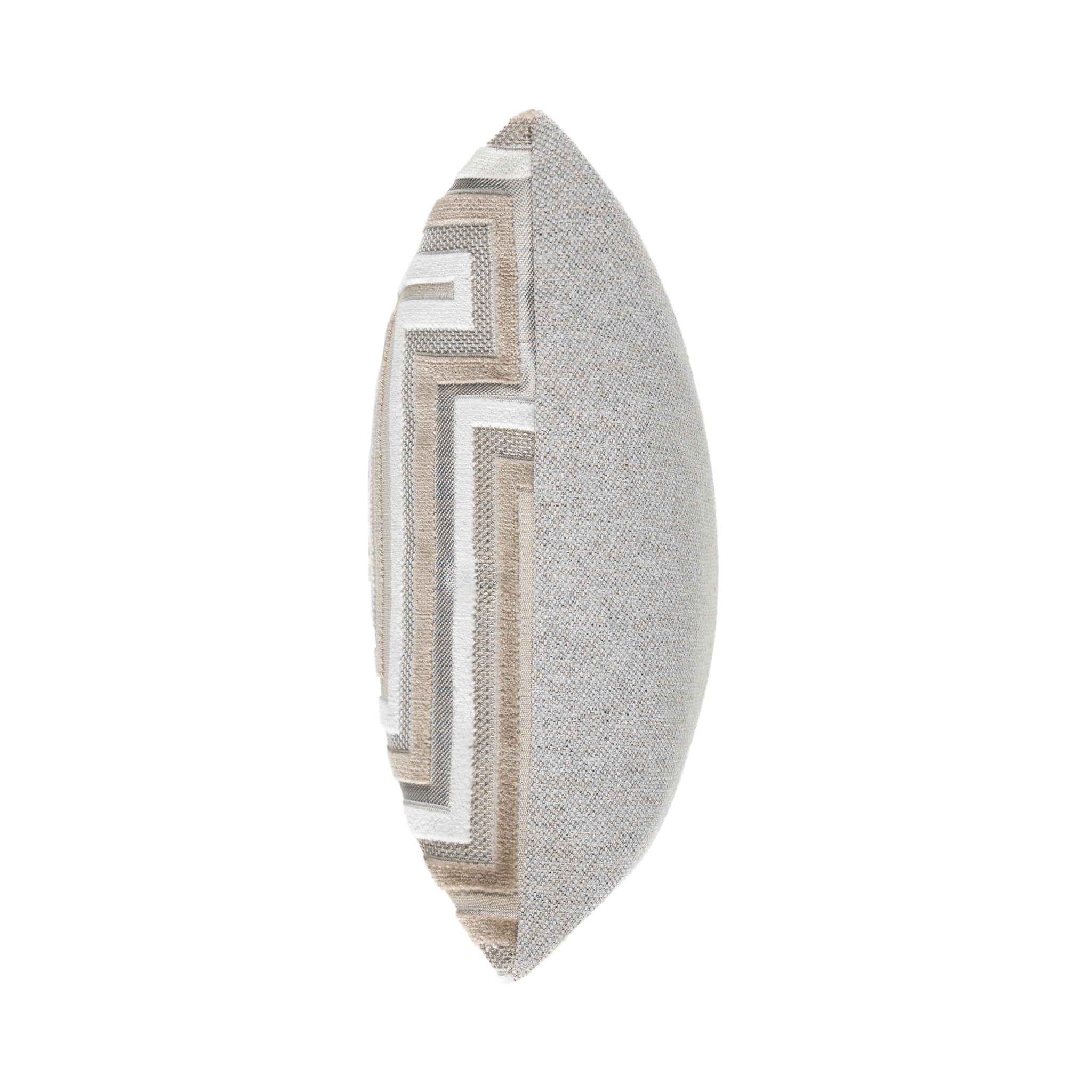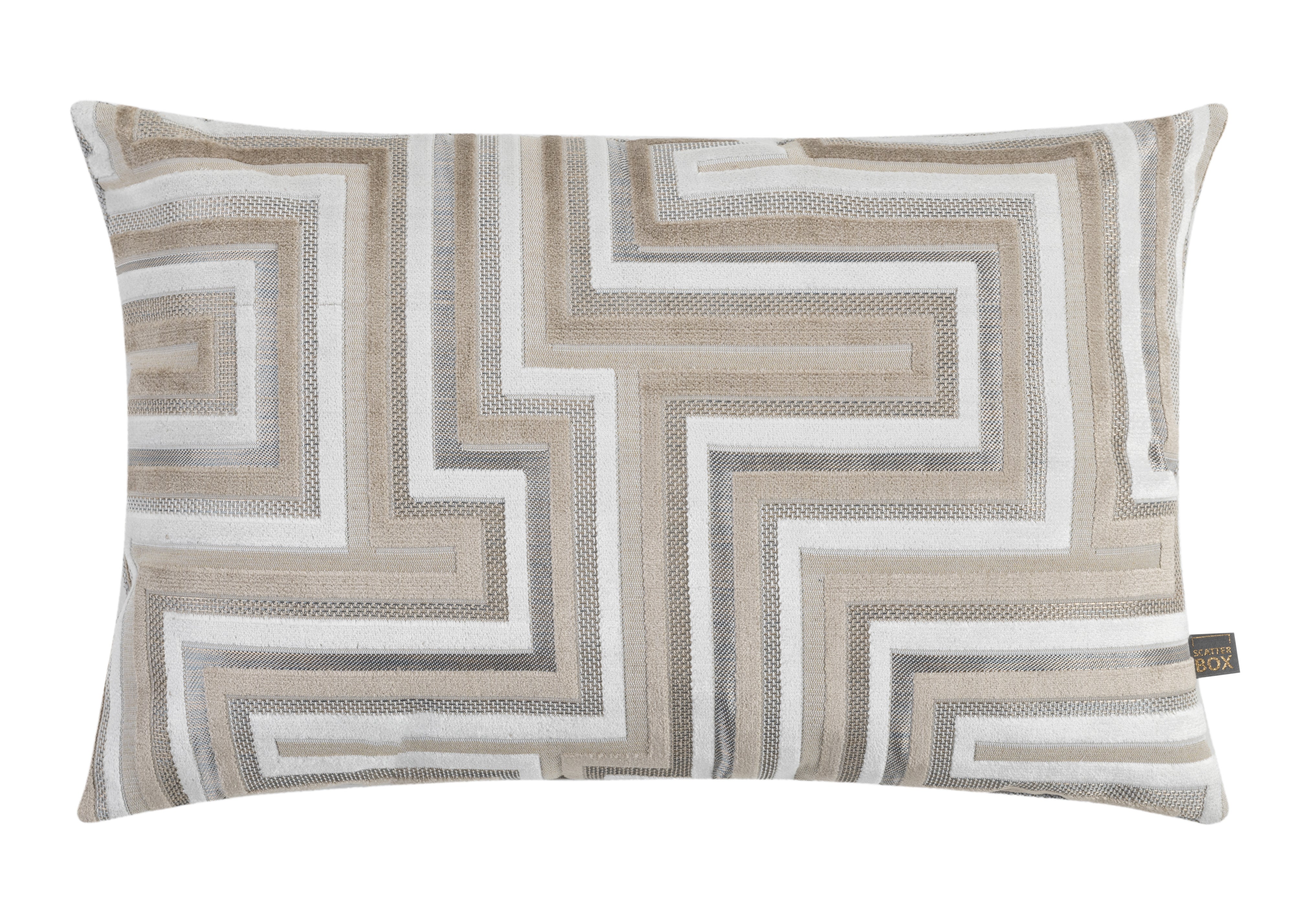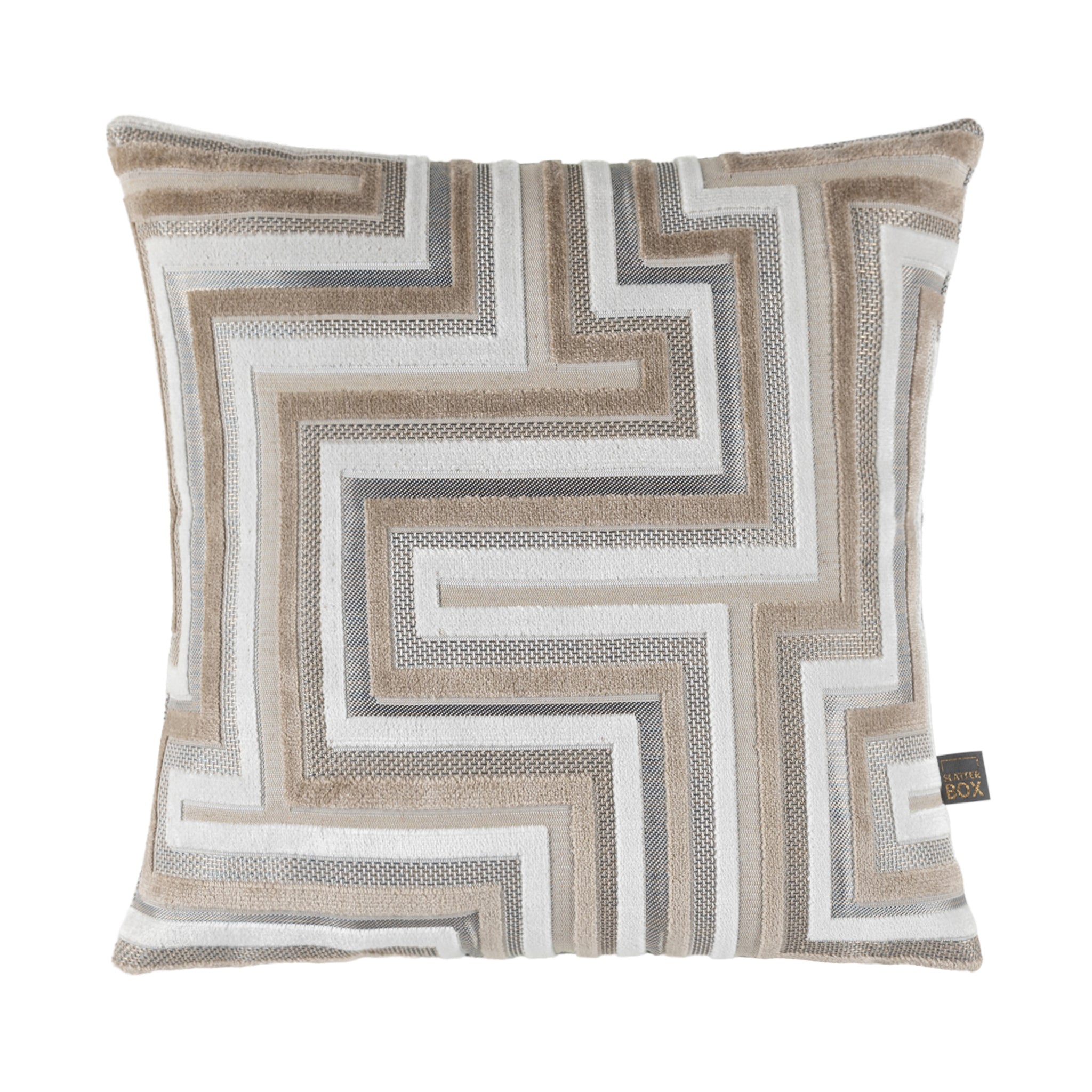 Introduce contemporary structure and soft texture to your home with the Austen cushion. Crafted from luxurious cut velvet, it features a bold geometric design in layered tones of natural, ivory, and taupe, creating subtle depth and visual interest. A co-ordinating reverse and a clean knife-edge finish enhance its polished look, making it a versatile choice for modern interiors. Whether used to add structure to a sofa arrangement or bring a refined touch to bedding, this handcrafted cushion balances comfort with contemporary design.