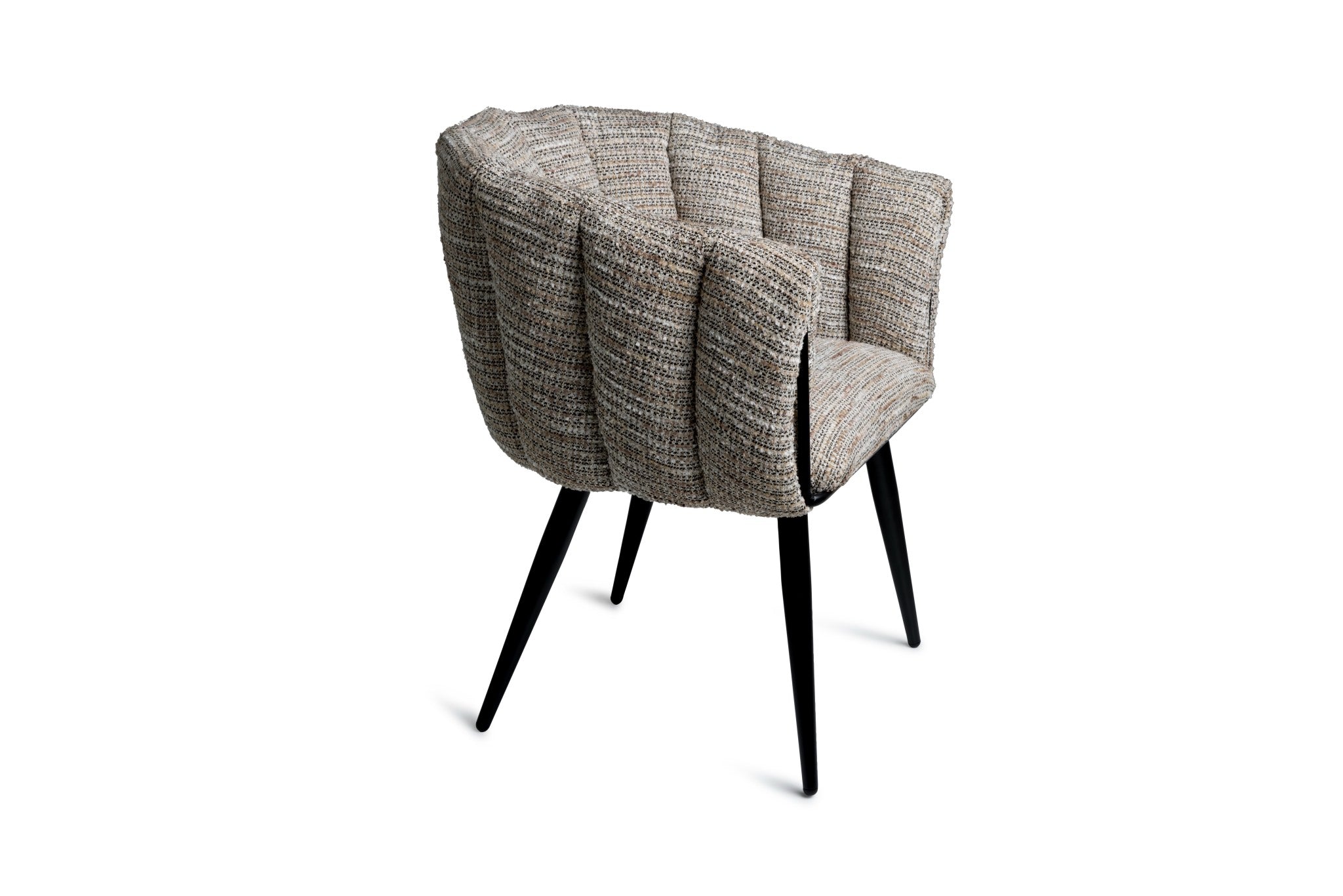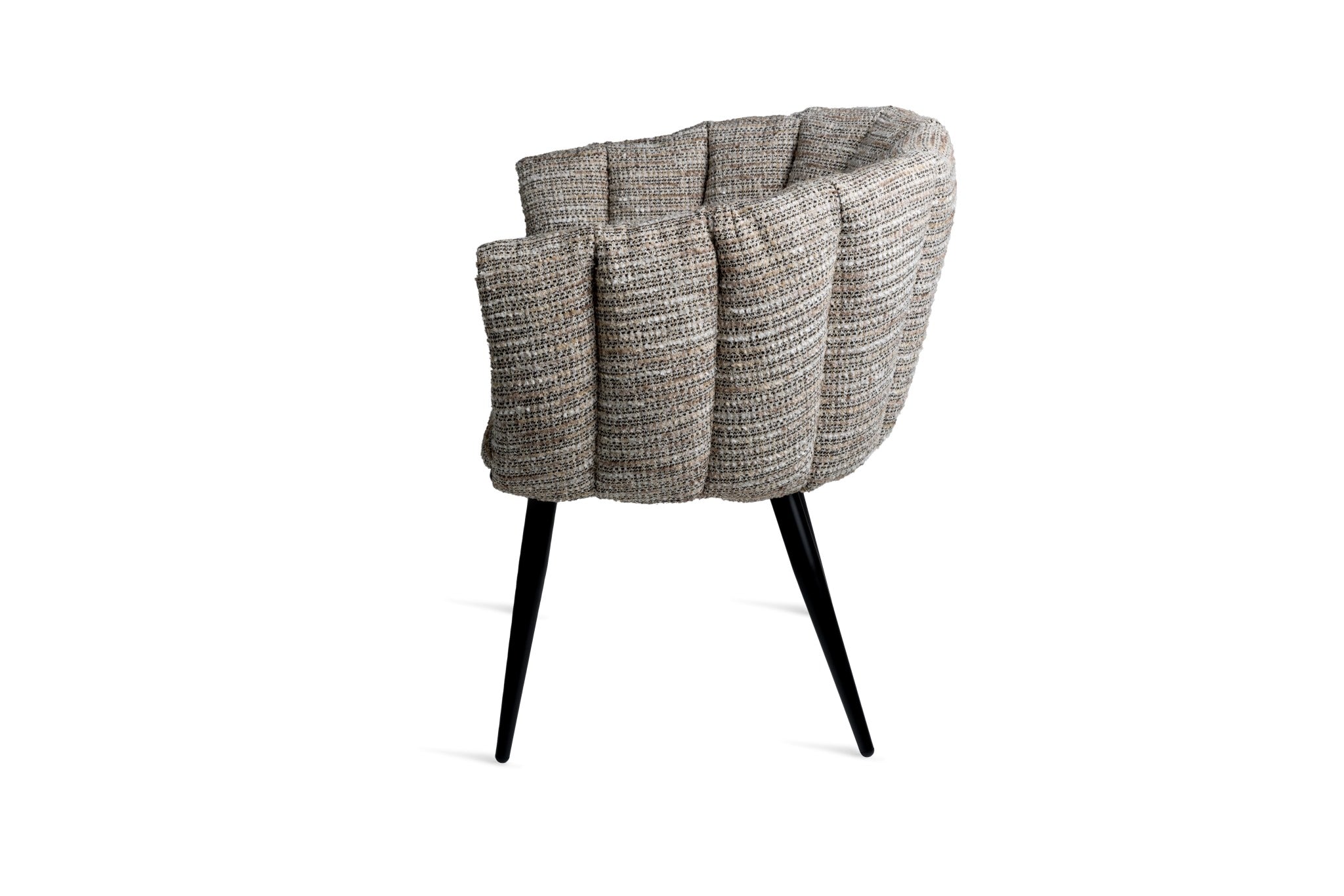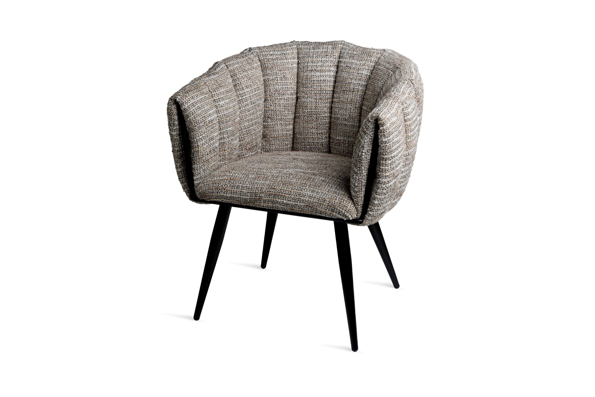 Elegant and inviting, the Bexley Chair blends mid-century influence with modern textural appeal. Crafted with a softly curved shell seat and deep stitched paneling, its tactile upholstery in a warm natural tone offers both visual and physical comfort.