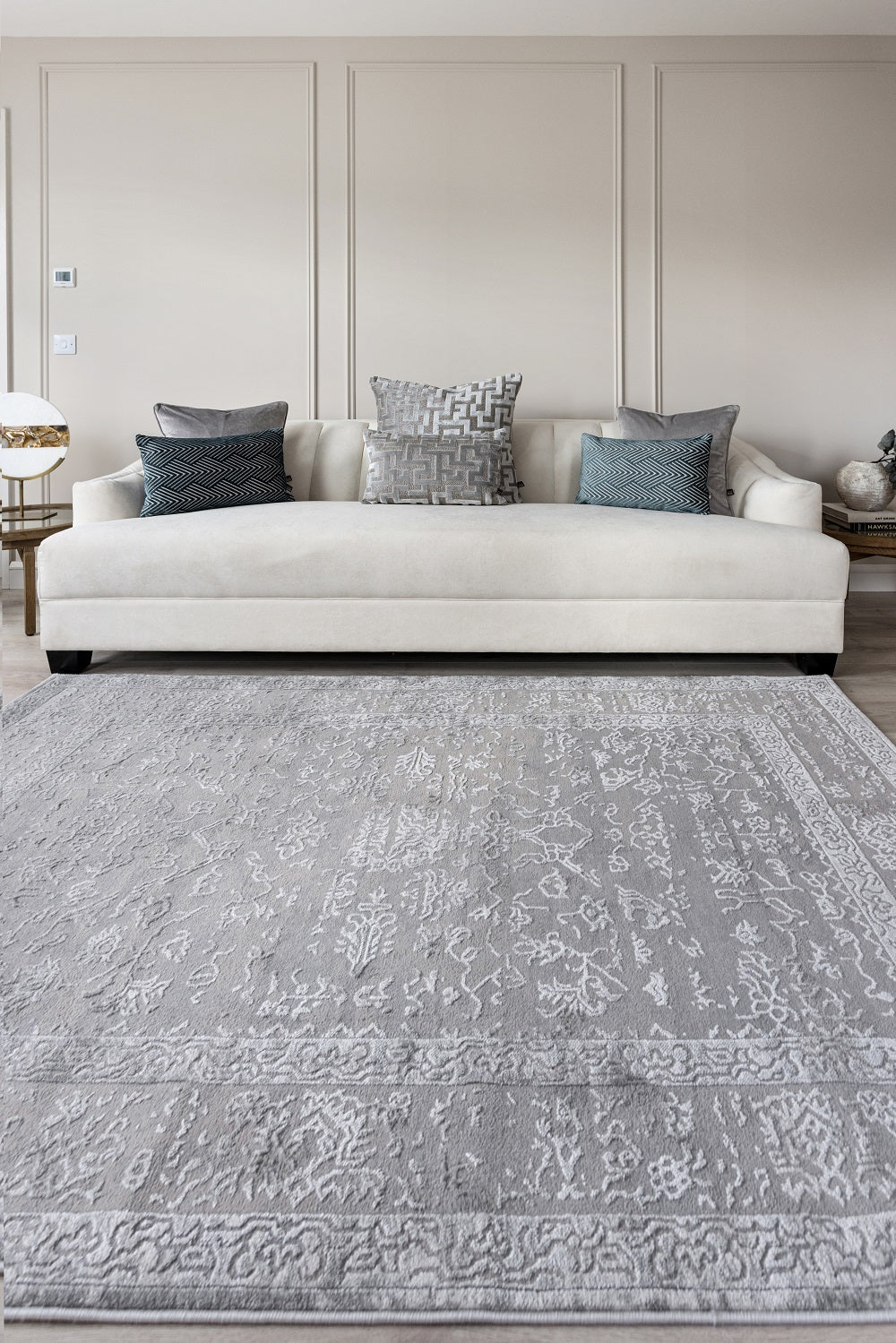Bringing historical artistry and modern hues together, this rug acts as the perfect base layer for the classic interior design. A faint pattern outline adds dimension to the piece without imposing on the aesthetic. Made with a power loom, it holds both durability and designer quality in equal measure.