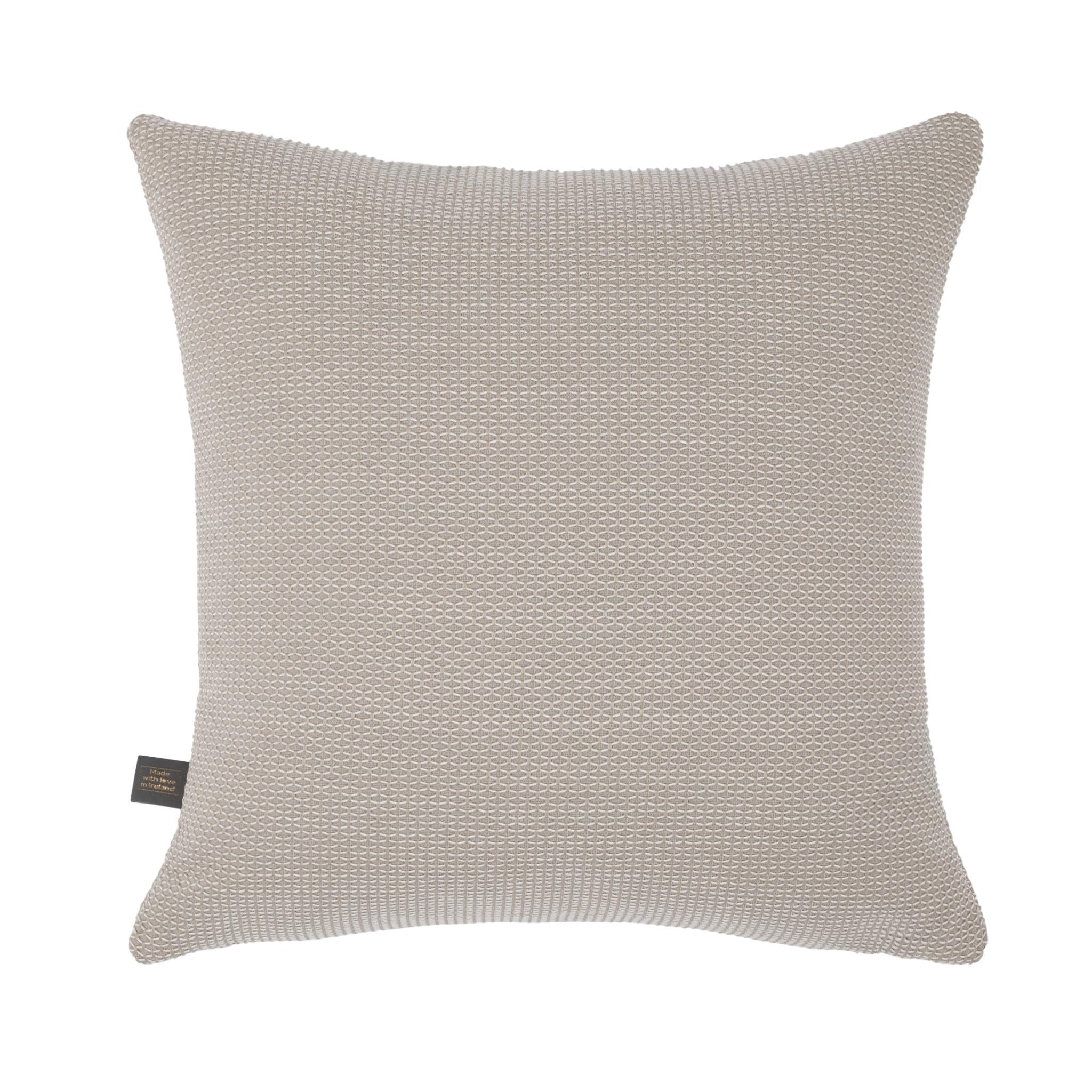 The Easton cushion blends refined texture with timeless simplicity, making it a versatile addition to any interior. Expertly handcrafted in Ireland, this design features a beautifully woven fabric with a subtle geometric texture that adds depth and dimension without overpowering your space. Its clean knife-edge finish creates a modern, tailored look, making it perfect for layering with other cushions or styling as a standalone accent. Easton effortlessly enhances sofas, armchairs, and beds with its understated sophistication and premium craftsmanship.