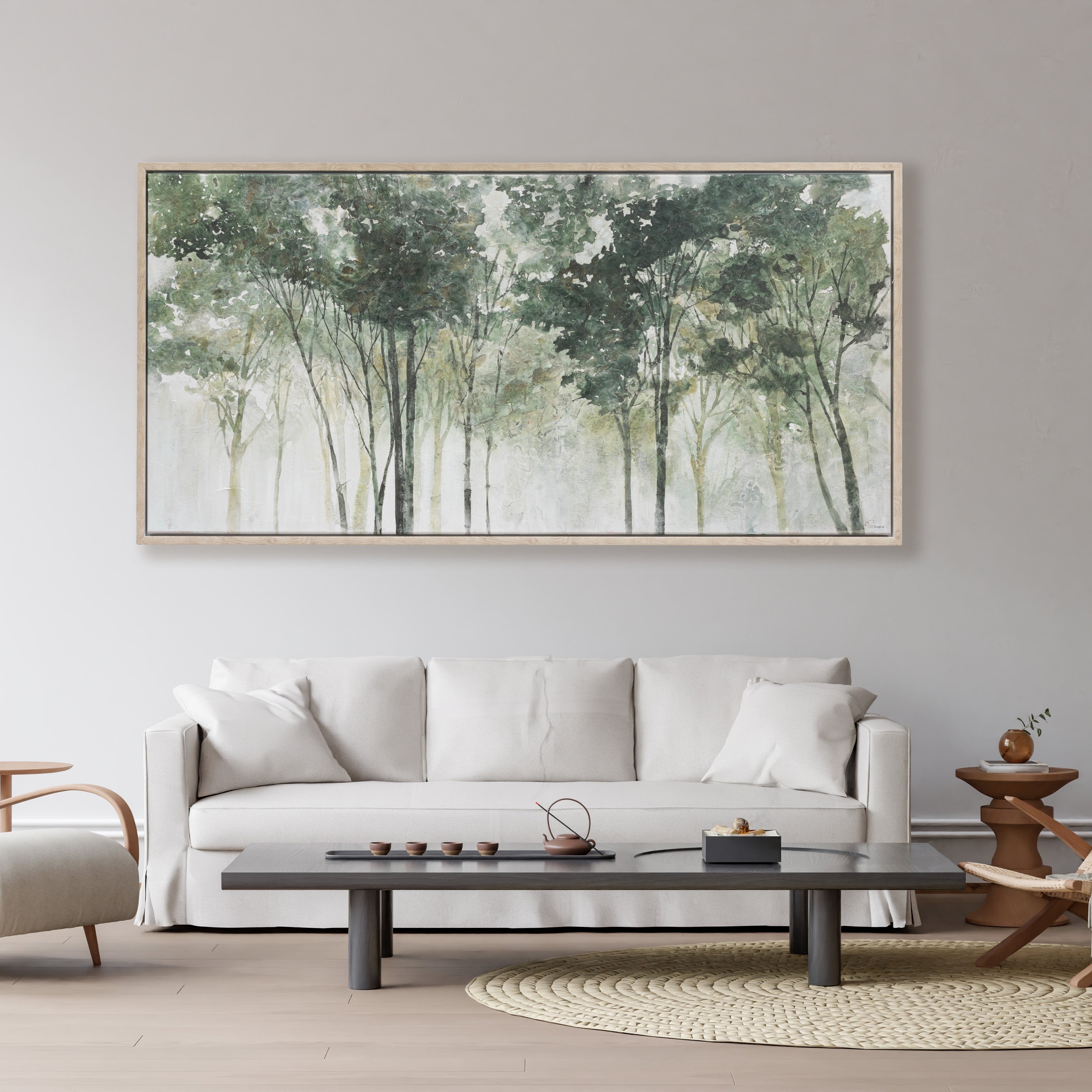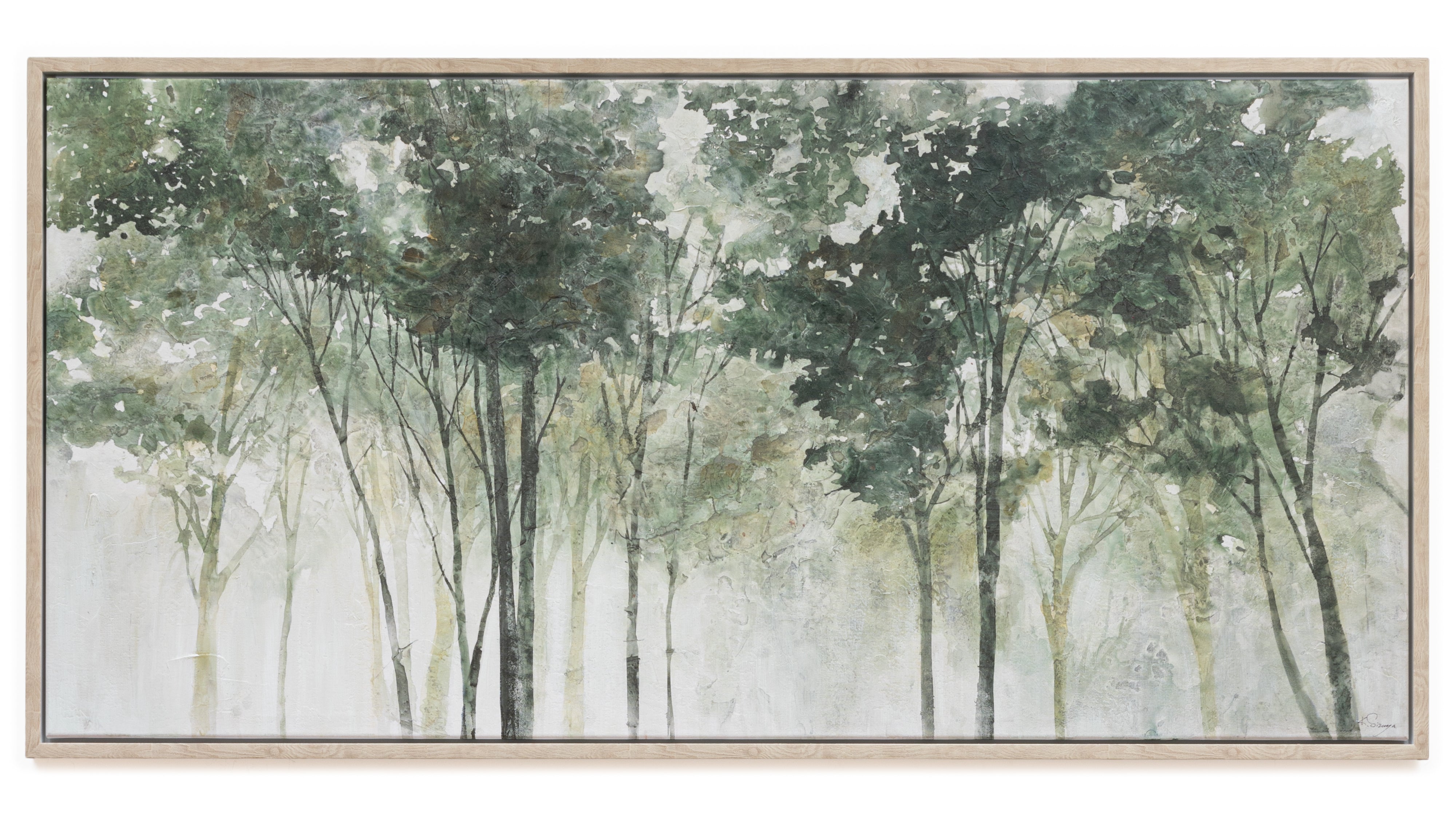 Bring the tranquillity of the outdoors into your home with Haisley, a serene hand-painted landscape designed to uplift any interior. Featuring soft, layered foliage in misty greens and neutral tones, this textured artwork draws the eye inward, creating a calming focal point. Crafted with a blend of hand-painted techniques, Haisley offers rich dimension and visual interest. The light wood floating frame enhances its natural aesthetic, making it an ideal piece for contemporary, Scandinavian, or biophilic-inspired spaces.