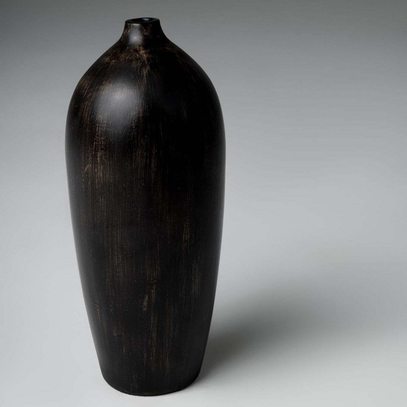 Make a bold statement with the Huxley Large Vase in black. Sculpted from sturdy polyresin and hand-finished with subtle brown undertones, this elegant piece brings contemporary character and texture to your interior. Its tall, gently tapered silhouette and organic brushed effect offer a refined, artisan feel. The vase is suitable for holding water, allowing you to display fresh blooms or foliage with ease.