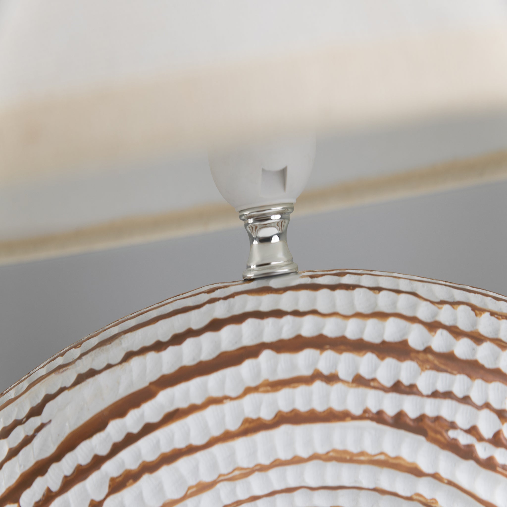 Crafted with a polyresin looped base, the Matisse Lamp stands out with its rhythmic, hand-applied grooves and tactile surface that play beautifully with light and shadow. The warm, neutral tones of the base are complemented by a classic cream fabric shade, which softly diffuses light to produce a warm, ambient glow.