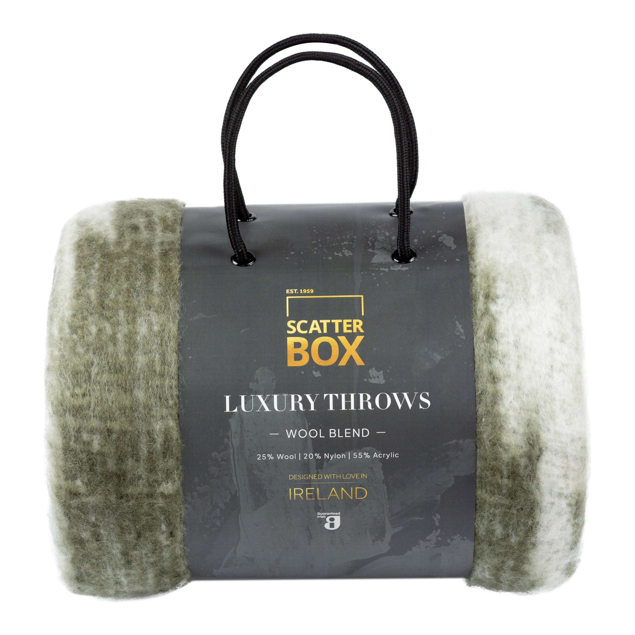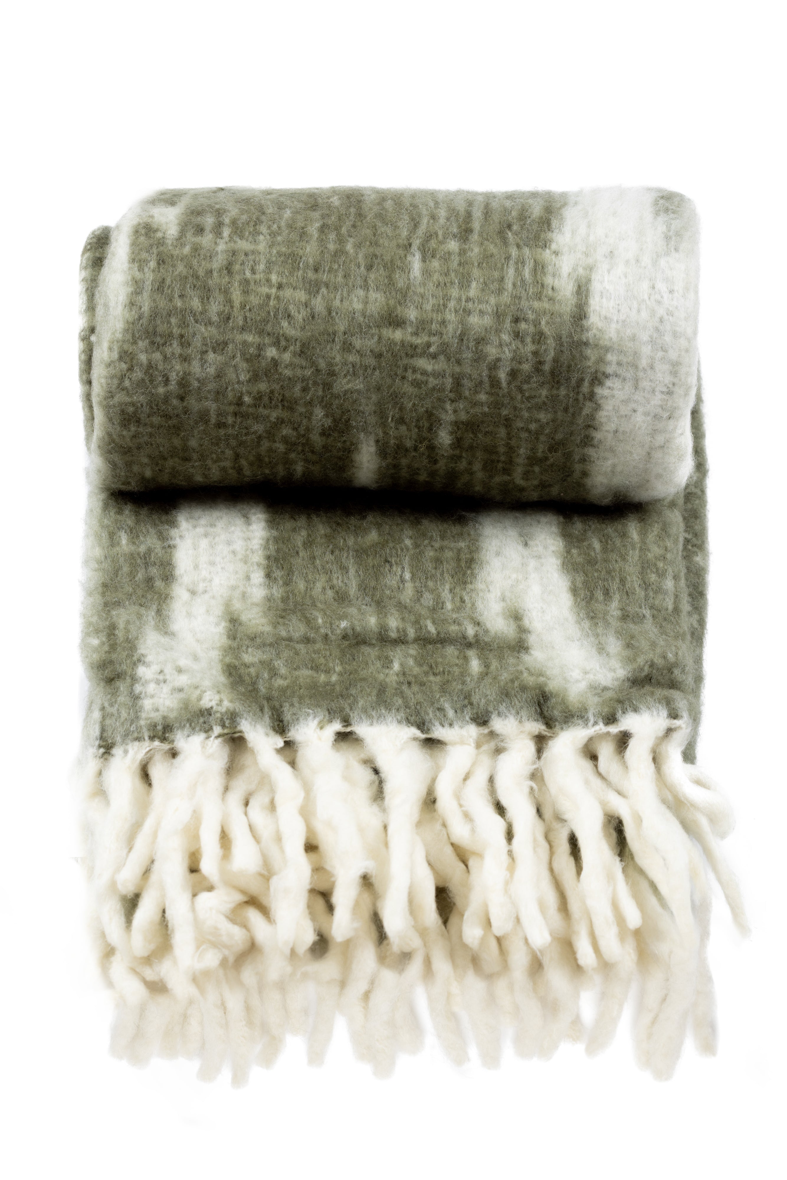 Elevate your living space with the Royce Throw, a luxurious blend of style and comfort. Crafted from a premium wool blend, this throw features a tonal mélange design that drapes beautifully over your sofa, bed, or armchair, adding warmth and texture to any setting. Its earthy green tones bring a natural, calming touch, while the thick white fringe along the edges adds a refined and elegant finish.