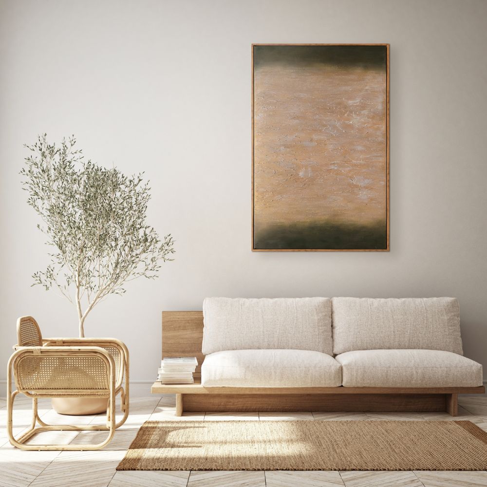 Elevate your space with the unbounded beauty of Fiáin art. Scaled to make an impression, the art piece invites comparisons to forest interiors in form and colour. Whether hung vertically or horizontally, the textured metallic waves enclosed with the green acrylic paint will create a serene pause within any space. Fiáin, is a hand-painted design, by artist Jess Kelly.