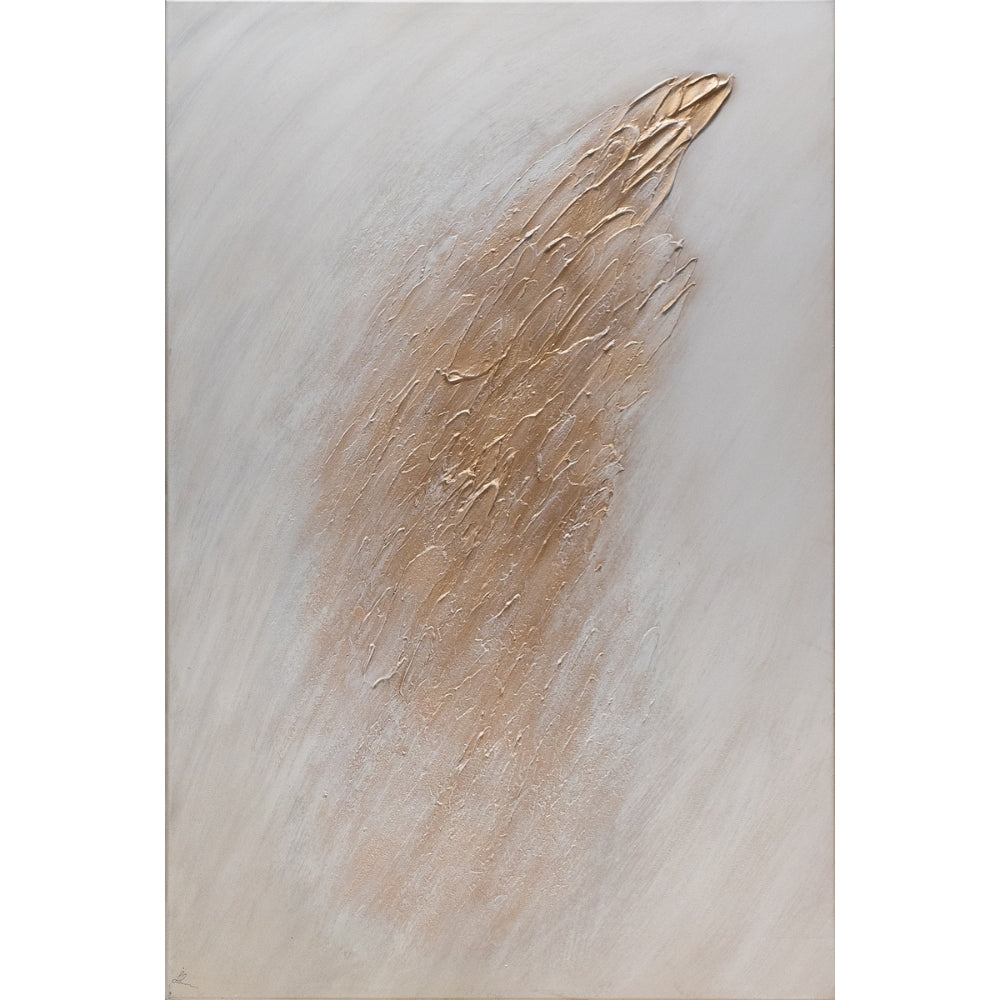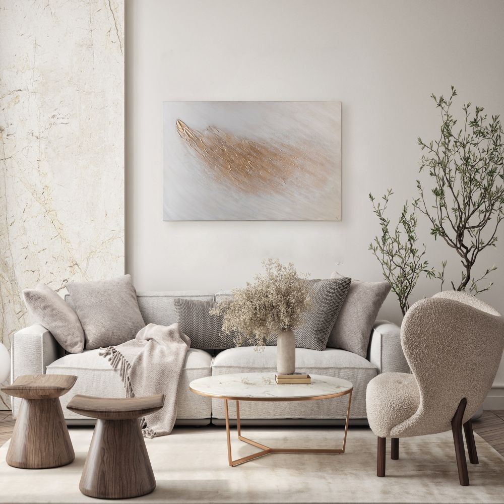 The Óige art is one for the neutral lovers. Soothing, heavy textures of metallic paint and luscious strokes of molding paste are generously applied to create depth and dimension to this piece. The frameless cotton canvas will surely add visual interest when hung in a hallway or living room. Óige 1, is a hand-painted design, by artist Jess Kelly.