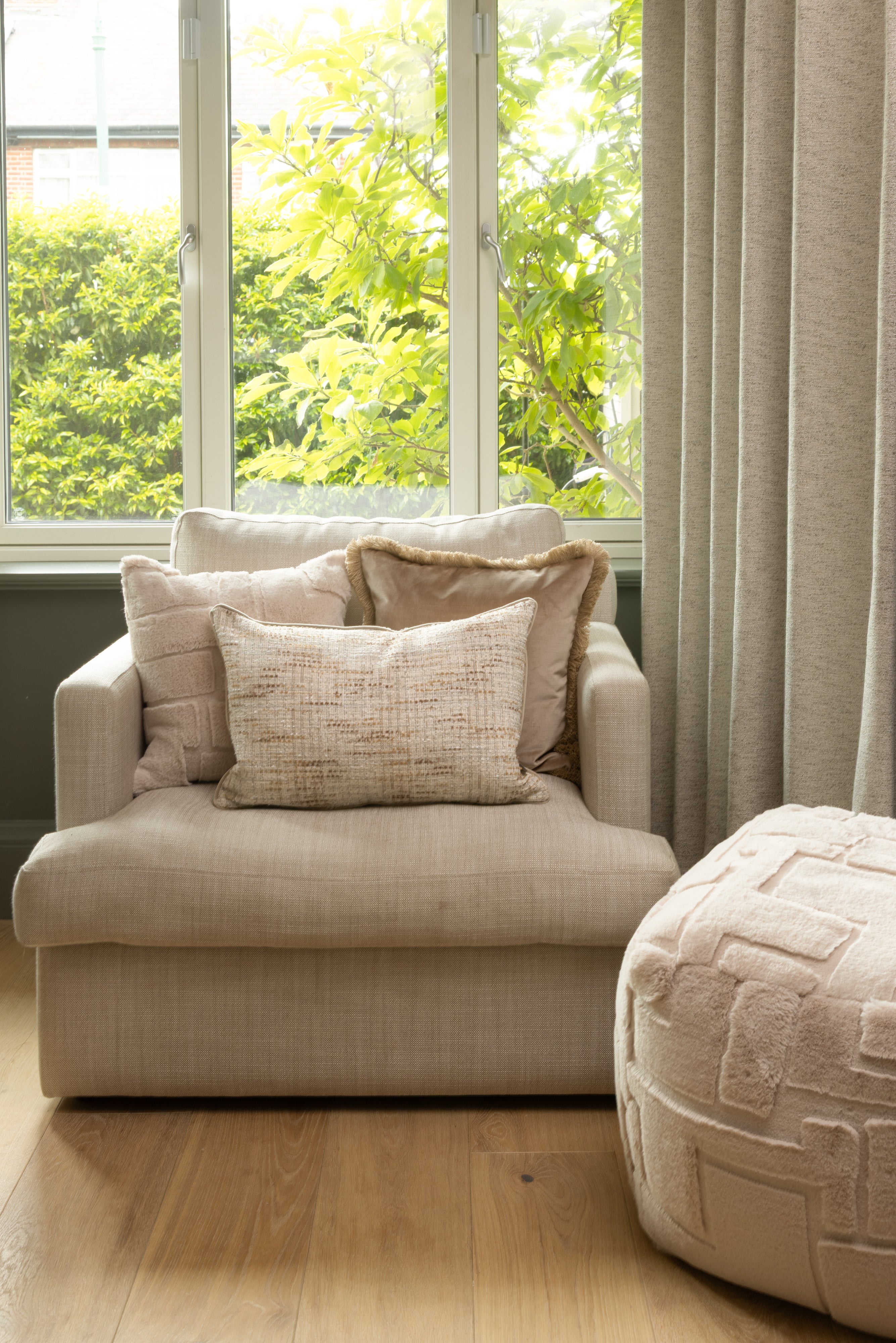 Its compact form provides versatile use—as a footstool, casual perch, or decorative layer—while the neutral palette ensures seamless coordination with a wide range of colour schemes. Ideal for styling in living rooms, bedrooms, or relaxed hospitality spaces.